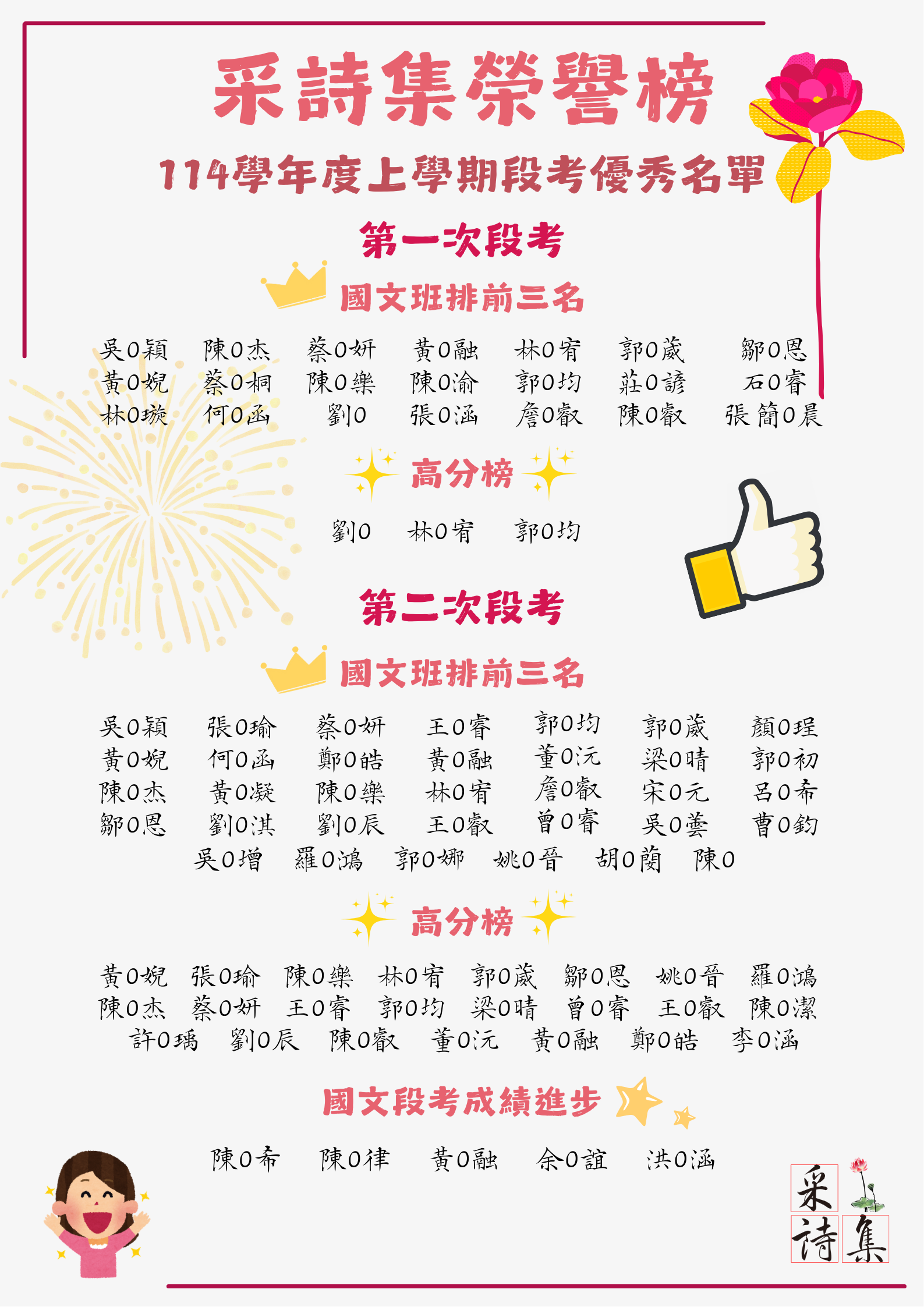 |捷報|🌟采詩集114學年上學期國文素養榮譽榜🌟